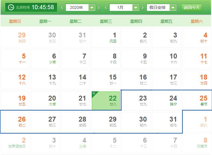 2020年春節(jié)期間,我公司放假時間為2020年1月23日(農(nóng)歷臘月二十九)至2020年1月31日(農(nóng)歷正月初七),2020年2月1日(農(nóng)歷正月初八)開始上班。春節(jié)放假期間,我公司暫停生產(chǎn)和服務工作,如有特殊事務請聯(lián)系我公司相關工作人員,帶來不便請您諒解。